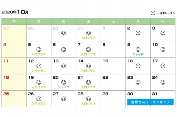 10月のレッスンスケジュール 株式会社ルーツワン
